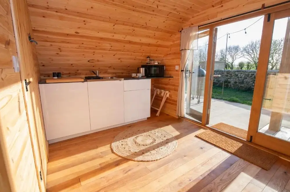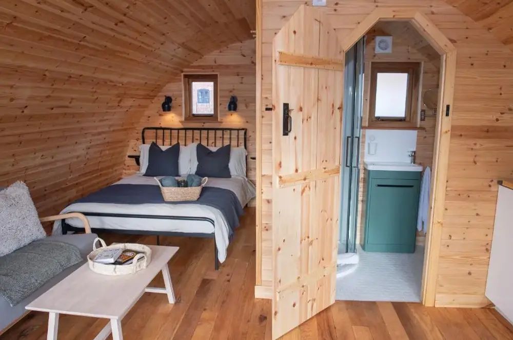 Más información sobre Meadow LodgeGlamping Pod 3 Harmony en Scarborough ofrece alojamiento con conexión WiFi gratuita y aparcamiento incluido para los huéspedes. Este espacio está diseñado para combinar comodidad y naturaleza, ideal tanto para escapadas románticas como para viajes familiares o de amigos.